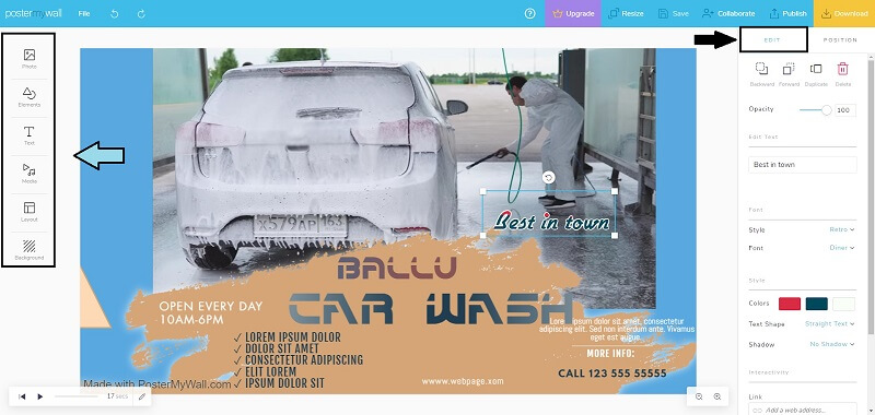 To show PostMyWall’s video editing features and template variety, we are going to create a car washing ad video using pre-existing templates.